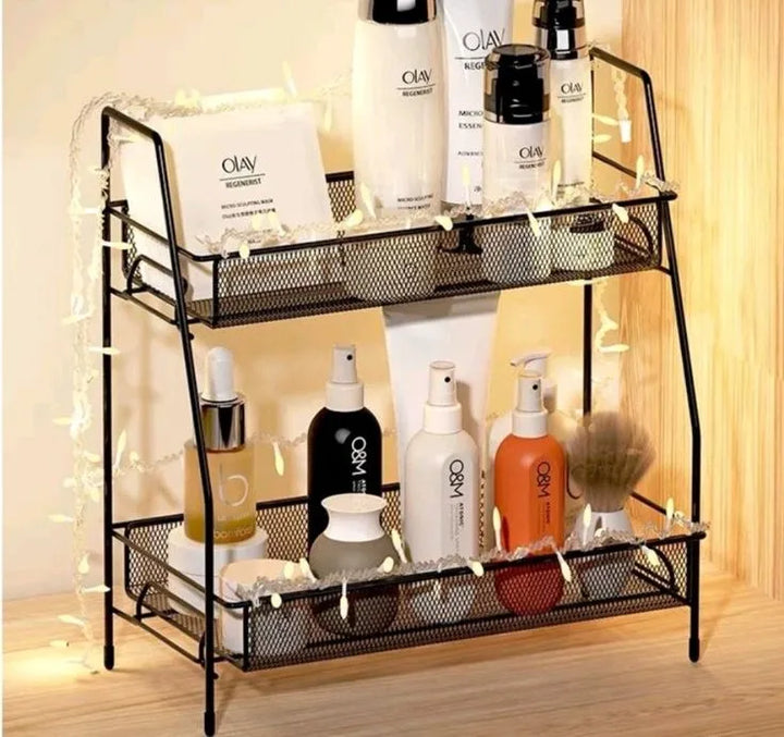 Add instant, organized space to your bathroom or kitchen with this 2-Tier Countertop Shelf Organizer from ruhdecor. Made with a durable carbon steel mesh structure, this versatile organizer is both lightweight and rust-proof, making it ideal for wet environments like bathrooms or near kitchen sinks.