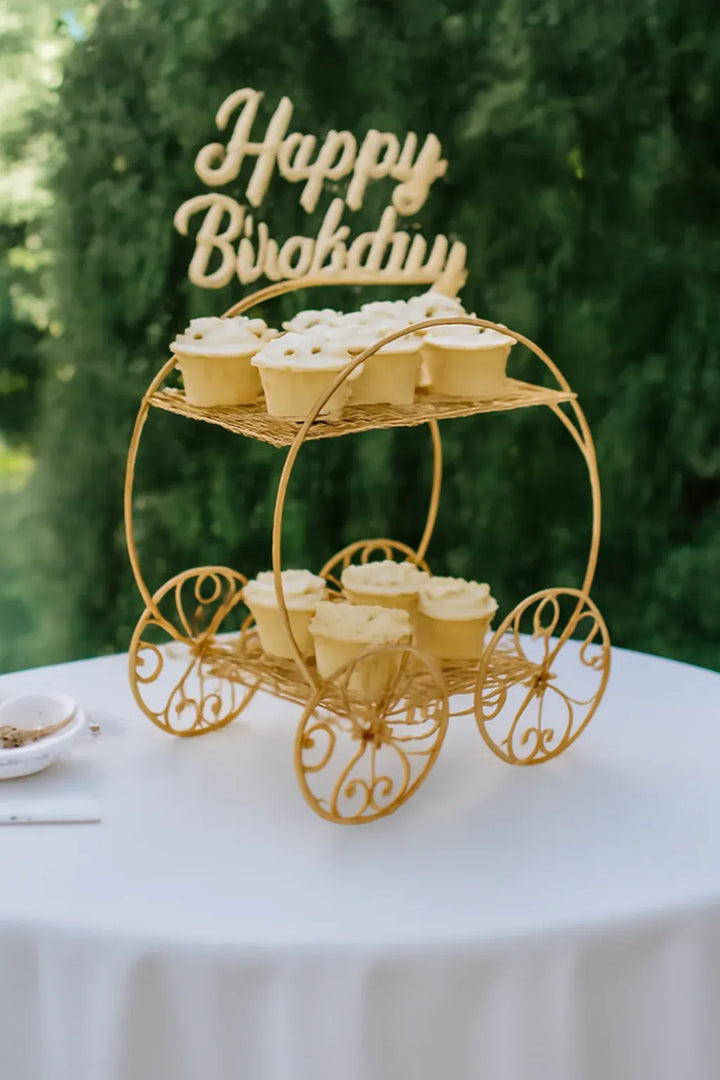 2-Tier Gold Metal Display Stand for Weddings, Birthdays & Events
