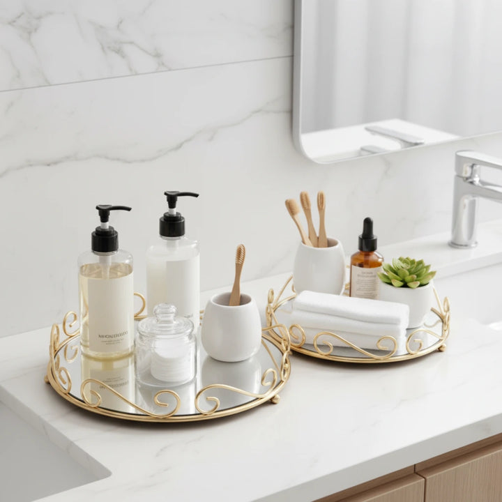 Transform your space into a Pinterest-worthy setup ✨ with this gold mirror tray — where beauty meets functionality 💫