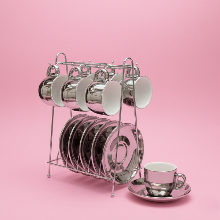- 1 × GlamRack Metal Cup & Saucer Stand (finish of choice).