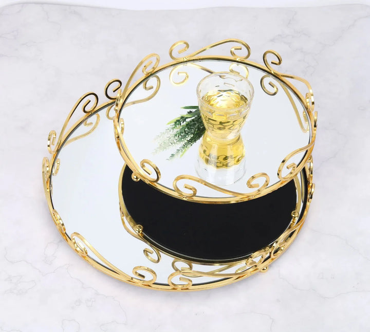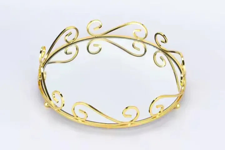 European Style Gold Mirror Vanity Tray – Ornate Glass Decorative Jewelry & Makeup Tray