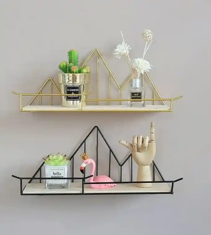 Add an artistic flair to your wall with the Mountain Design Wall Shelf by ruhdecor, available in two stunning finishes — classic matte black and luxurious gold. The unique geometric shape makes it perfect for displaying mini plants, figurines, candles, or collectibles. Whether you're styling a living room, bedroom, or workspace, this elegant shelf adds personality and function to any empty wall.