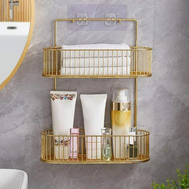 [2-Layer Design]Shower caddy shelf with double-layer holder, ideal for storing bathroom shower accessories.